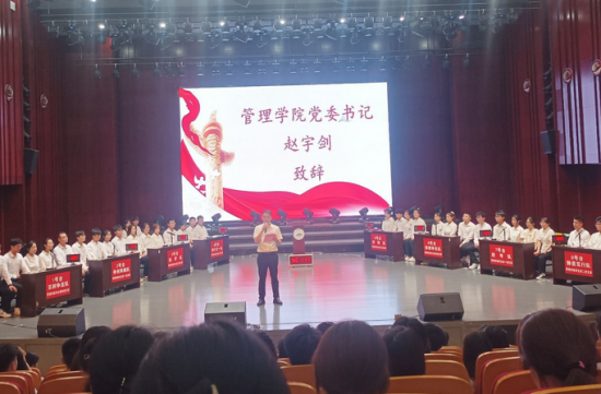 KY开元集团官网党委书记赵宇剑致辞,“希望学生党员紧紧把握‘学思想、强党性、重实践、建新功’的总要求,坚持以学思想为主线,求实效为目标,立足学院与实际,进一步推进主题教育走深走实”,他希望广大青年学生以这次主题教育知识竞赛为契机,进一步发挥好学生党员的示范作用,以学铸魂,以学增智,以学正风,以学促干,夯实思想基础,从知识竞赛中汲取奋进力量。