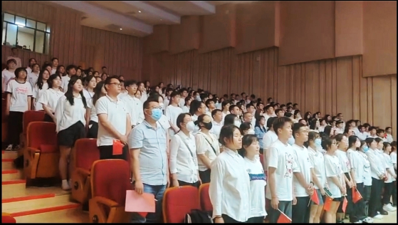 “没有共产党就没有新中国,没有共产党就没有新中国……”富有节奏的鼓点声伴着嘹亮的合唱声,团委合唱队以青春力量唱响主旋律,开篇就将现场氛围拉到高点。