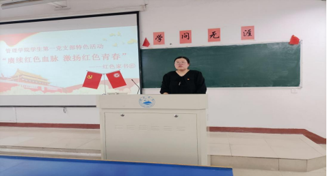 为重温红色记忆,传承英烈精神,4月19日KY开元集团官网学生第一党支部在立信楼308开展“赓续红色血脉,激扬红色青春—红色家书”特色活动。支部书记杨晶同志出席,全体在校党员、预备党员、入党积极分子积极参加活动。本次活动由杨泽鑫同志主持,活动分为三部分,第一部分为支部书记讲话,第二部分为诵读红色家书,第三部分为讲述红色家书的内容和背景故事。