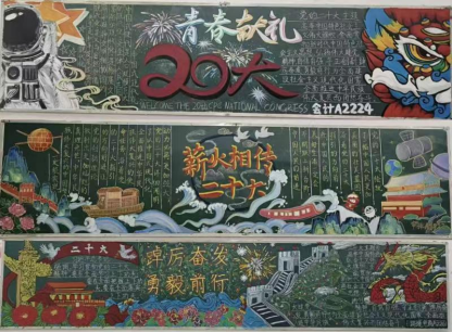 心中有党,笔下生花。学院团委宣传部举办了“踔厉奋发、勇毅前行”学习党的二十大精神黑板报评比活动,营造学习宣传党的二十大精神浓厚氛围。各班团支部积极发挥团员青春活力与创造力,用板报佳作绘出祖国河山,抒发爱国情怀,爱党热情,为党的二十大的成功召开送上祝福。