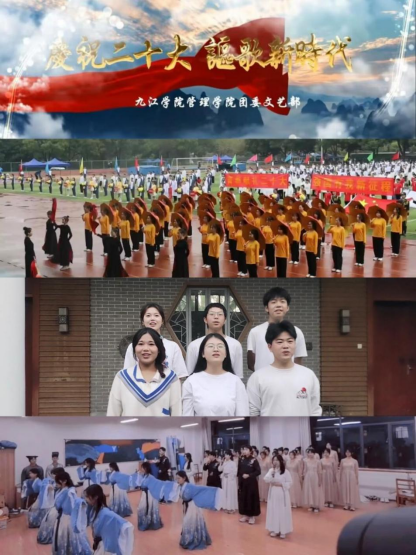 同学用悠扬嘹亮的歌唱与灵动曼妙的舞蹈,绘成一帧帧画面,共同组合成礼献党的二十大胜利召开的青春身影。