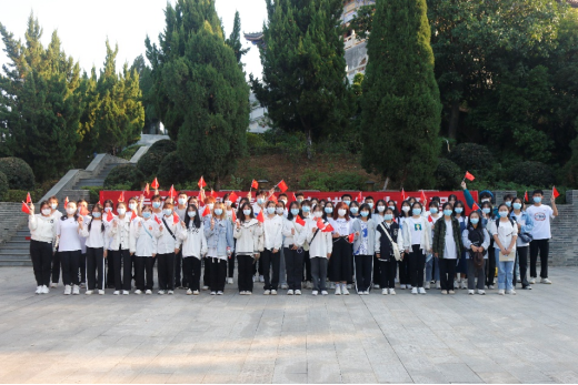 上午直播结束后,KY开元集团官网组织各团支部团员青年来到南山公园烈士陵园,向革命先烈致敬,把讲话精神内化于心,外化于行,将在大会上的所思所悟转化为实际行动。活动中,各团支部代表来到纪念碑前,向革命先烈献花,鞠躬默哀。纪念仪式结束后,同学们在烈士园陵前作青春宣誓,并摆出“20”字样,庆祝党的二十大胜利召开。“我宣誓,我将以青春之名,喜迎党的二十大,立志民族复兴,不负韶华,不负时代,不负人民,在青春的赛道上奋力奔跑,争取跑出当代青年的最好成绩!”同学们的宣誓铿锵有力,展示出新时代青年优秀的精神风貌,游客们驻足观看,被同学们的青春告白所打动,纷纷为同学们拍照点赞。