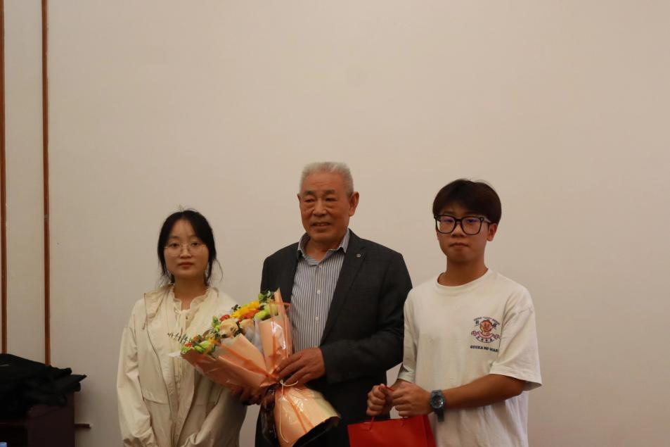 活动中,班级班长周瑞阳、团支部书记汤雨盈一起向杨贞斌教授敬献了鲜花,代表团员青年向老教授送上节日的祝福;团员代表彭琳艺同学分享了重阳节的由来、风俗传统。