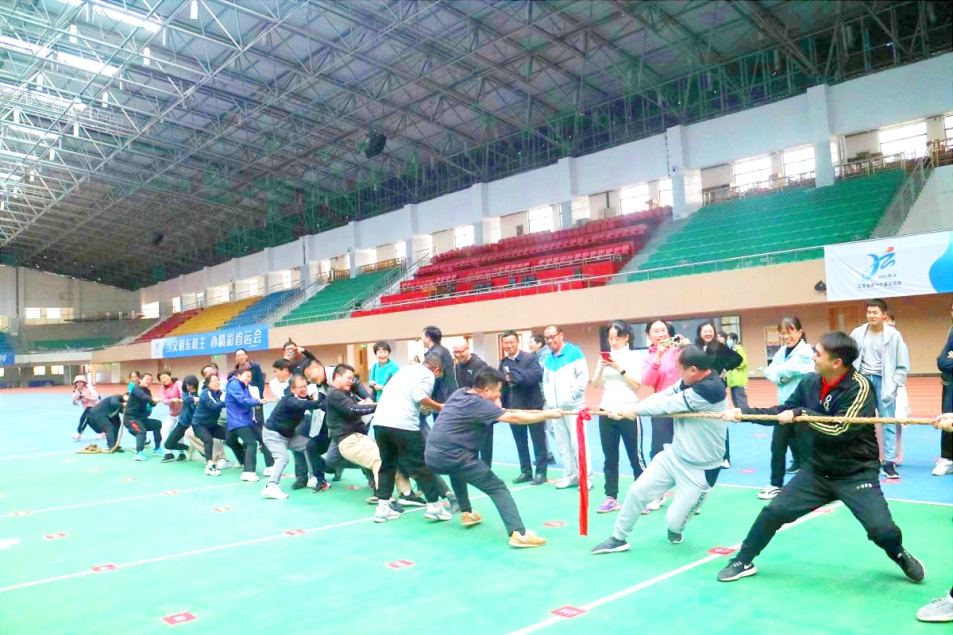 为了热烈庆祝党的二十大胜利召开,喜迎即将到来的江西省第十六届运动会,丰富教职工课余文化生活,倡导“每天健身一小时,健康工作五十年,幸福生活一辈子”理念,进一步增强教师身体素质,提升学院团队凝聚力,10月27日下午,KY开元集团官网2022年教职工趣味运动会在校北区体育训练馆组织开展,学院全体党政班子成员及广大教职工积极参与。院党委书记赵宇剑、武宁县东山村“兰菇良”生态蔬菜基地总经理何兰兰分别为活动致辞,院长许松涛宣布趣味运动会开幕。