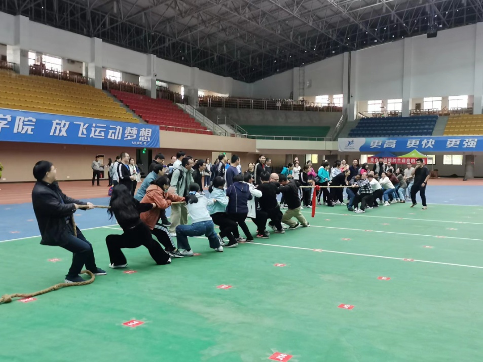 本次比赛“重在参与、贵在合作、意在友谊”,学院工会委员们集思广益、精心策划,设置了男女混合毛毛虫“竞速”赛、男女混合拔河“角力”赛、男女混合篮球“准头”赛、男女混合跳绳“竞数”赛、男女混合羽毛球“竞技”赛等五个项目,无论是赛前以党支部、教研室、科室组队的,还是现场兴起临时组合的,或是与现场学生即兴互动的,不设固定的赛程赛制,快乐是唯一标准,健康是永恒祝福,团结是奋斗力量,较量中精彩纷呈,活动中欢声笑语,老师们乐在其中,活动取得了圆满成功。