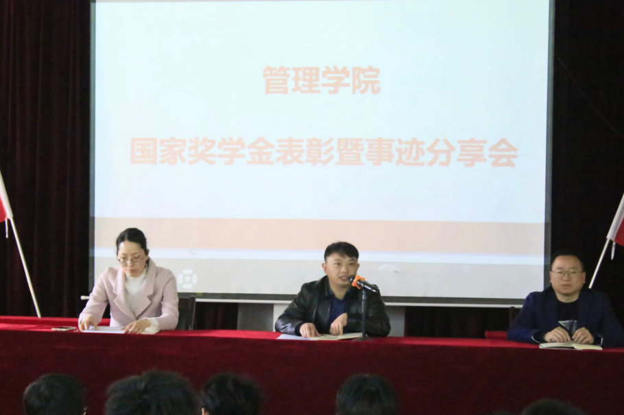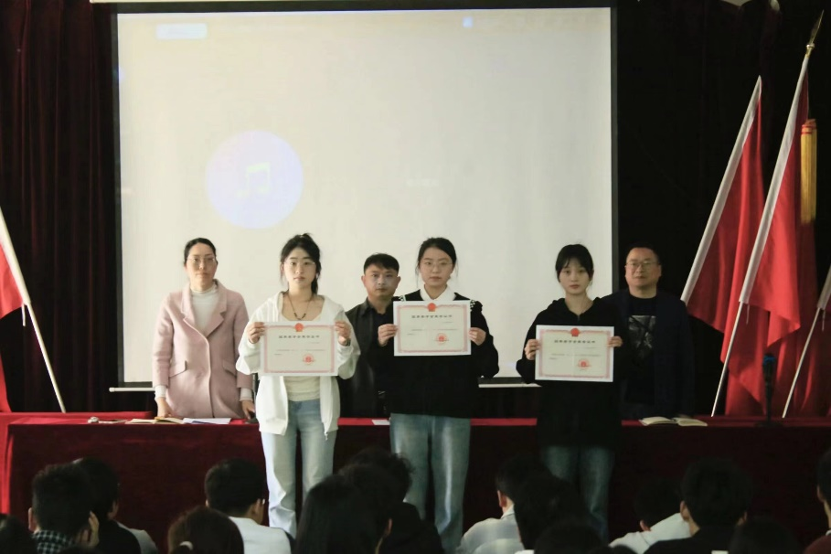会议为伍莹莹、饶菲、周欣怡三位国家奖学金获得者举行了颁奖仪式。