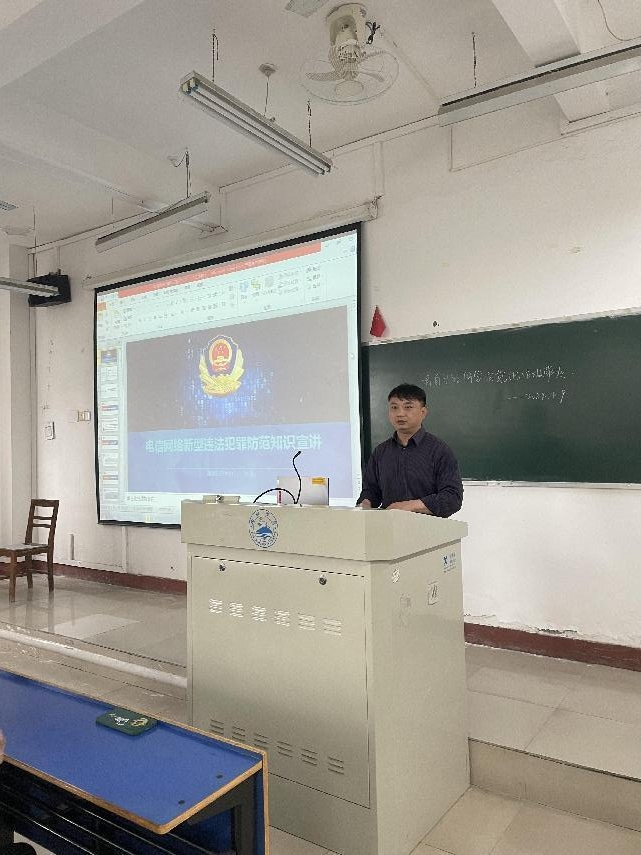 为切实增强我院在校学生的反诈意识和识骗能力,进一步提高学生的网络安全意识,有效防范网络诈骗案件发生,KY开元集团官网特邀九江市公安局濂溪区分局反诈中心民警李清警官于4月10日下午来院宣讲电信网络新型违法犯罪防范知识。学院党委副书记周梓哲、学生管理科科长周龙波、大一大二大三年级各班班长、团支书参加讲座。讲座由周龙波主持。