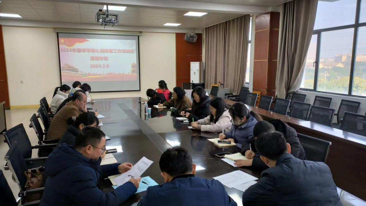 开展春季学生心理健康大排查。3月8日上午,学院举行心理健康大排查工作培训会,要求辅导员、班主任全面排查学生返校后的心理健康状况,做好各类心理问题的早期干预和心理危机预防,呵护学生心理健康。