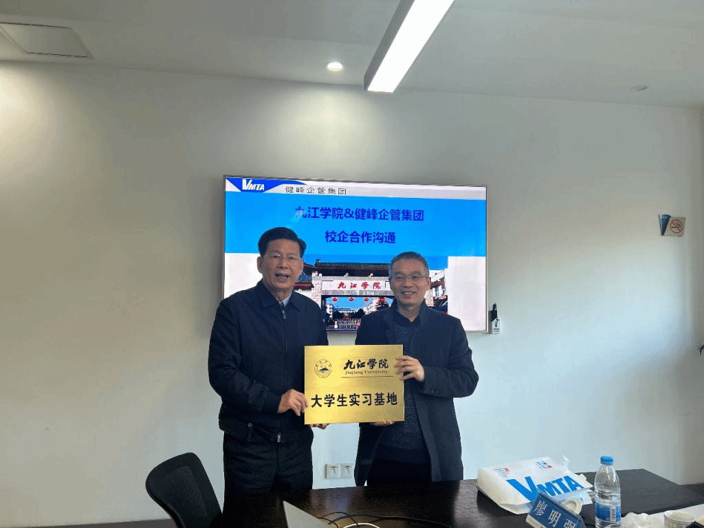在热烈友好的氛围中,许松涛院长与叶斯水董事长共同为“九江学院大学生实习基地”揭牌。