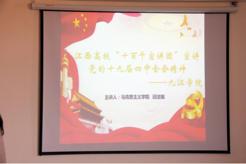 宣讲会上,邱洁瑞结合国际、国内形势,根据党的十九届四中全会审议通过的《中共中央关于坚持和完善中国特色社会主义制度、推进国家治理体系和治理能力现代化若干重大问题的决定》,从“充分认识坚持和完善中国特色社会主义制度、推进国家治理体系和治理能力现代化的重大意义”、“准确理解中国特色社会主义制度和国家治理体系的显著优势”以及“全面把握坚持和完善中国特色社会主义制度、推进国家治理体系和治理能力现代化的战略部署”等多方面内容,全面、深刻解读了党的十九届四中全会精神,使在场的教师深受启迪和教育。