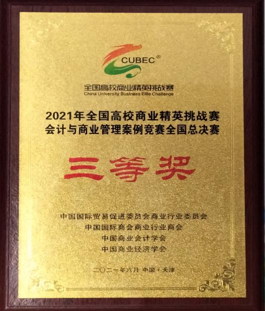 6月8日-10日,由中国国际贸易促进委员会商业行业委员会、中国国际商会商业行业商会、中国商业会计学会和中国商业经济学会共同主办的2021年全国高校商业精英挑战赛会计与商业管理案例竞赛全国精英赛在天津梅江会展中心成功举行。大赛历经四个月,经过层层选拔,最终有64所院校的165支参赛队脱颖而出赴现场参加全国总决赛。我校两支队伍经过激烈比拼,最终获得了一个全国二等奖和一个全国三等奖的好成绩。