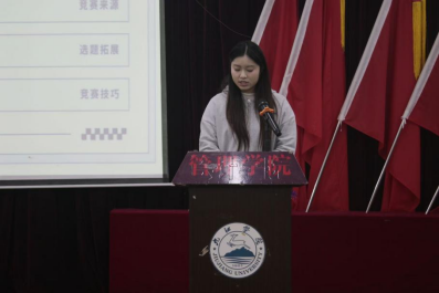 会上,国赛指导教师王晴和第十四届各参赛获奖队伍成员分别分享了参赛的宝贵经验,他们从项目筹备、团队协作、市场应对等多方面入手,详细讲解了在竞赛中脱颖而出的诀窍,展示了占宇雯等团队荣获国赛一等奖的路演风采,为同学们树立了榜样标杆。