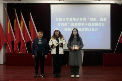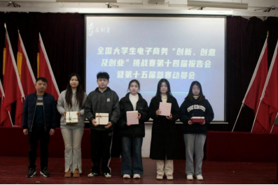会上,与会领导为第十四届全国大学生电子商务"创新、创意及创业"挑战赛获奖师生进行了颁奖。