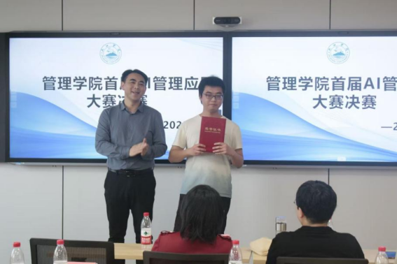 许松涛院长在赛后点评中指出:“AI管理应用作为极具变革性的技术,其应用前景将深刻影响社会各领域。本次大赛高度契合数字化时代发展需求,有效引导师生在参赛过程中激发对人工智能前沿技术的认知,全方位提升师生AI管理应用能力。从同学们的方案中,欣喜地看到大家敏锐捕捉到了AI在管理领域的多元可能性,无论是优化流程、提升效率,还是挖掘潜在数据价值,都做出了有益尝试。获奖的这6支队伍,凭借独特视角和扎实实践脱颖而出。下一步,学院将持续搭建创新平台,为同学们提供更多资源与支持,助力大家将创意转化为推动社会进步的实际动力。