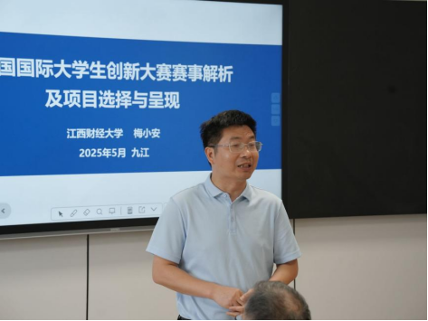 梅小安教授以“中国国际创新大赛赛事解析及项目选择与呈现”为题,结合历年赛事经典案例,深度解读评审规则、选题策略及项目计划书撰写技巧。他提出,优质项目需以社会需求为导向,聚焦行业痛点,结合政策机遇,兼顾创新性与可行性,为师生明确了备赛方向。谢亮教授以“文科类专业参赛项目挖掘及培育策略”为题展开辅导,他结合自己丰富参赛经验,分享了如何做好中国国际创新大赛项目的创新性、落地性、普及性,寻找空白点、难点与痛点,不断推进模式创新、制度创新,实现品牌差异化,鼓励我校多打造具有九江地域特色的中国国际创新大赛竞赛项目。