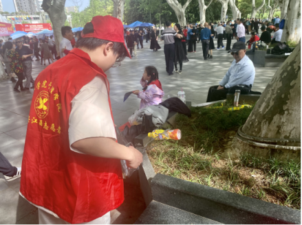 维护国家安全,青年有担当。支部的同志们、同学们进行宣传的同时,担当起志愿者。他们穿着红马夹,顶着下午的骄阳,在广场四处捡拾垃圾,为创建文明九江贡献了自己的一份力量。