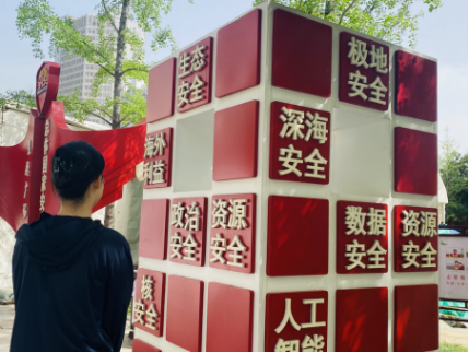 强化安全意识,共筑国家安全。在主题广场,支部的党员、入党积极分子逐一观看了关于国家安全教育的宣传栏充分了解了全民国家安全教育日的由来、国家安全的基本内容和习近平总书记关于国家安全的重要论述内容,他们有的在宣传栏前驻足良久若有所思,有的自发组成小组边看边交流讨论,有的则在“总体国家安全观主题广场”的标志性造型前拍照留念。