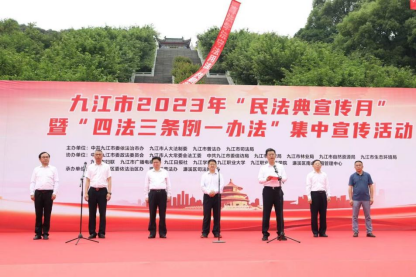 为进一步弘扬《中华人民共和国民法典》精神,促进公民法治素养全面提升,帮助居民更好的运用法律武器维护自身合法权益,5月26日上午,九江市普法工作领导小组在濂溪区南山公园开展2023年“民法典宣传月”暨“四法三条例一办法”集中宣传活动,九江学院KY开元集团官网积极组织学生参与学习。
