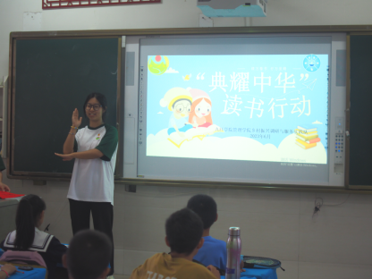 强化数字赋能,品味经典书籍。为充分利用线上教育平台打破城乡教育“数字鸿沟”,帮助乡村学生形成“爱读书、读好书、善读书”的浓厚氛围,助力乡村教育事业发展,实践队与同学们一起开展“典耀中华”读书活动,通过讲解国家智慧教育平台、中国语言文字数字博物馆等平台使用方法帮助乡村学生拓展线上学习渠道,推广数字教学,队员们还在课堂上带领同学们诵读四大名著、孙子兵法等经典书籍,并开展成语故事分享会加强阅读交流,感悟书中真谛。活动中,实践队为孩子们送上经典书籍大礼包,希望以此活动为契机,让读书成为陪伴孩子们成长的精神动力。