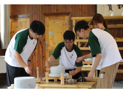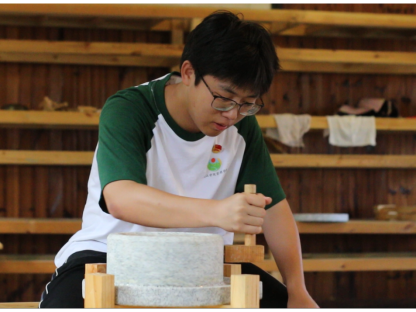 星子石磨台,甘香转出来。一方石磨台,默默辛勤碾食粮,磨出甘畅清甜,转出历史文化轮轴;一根粗木杆,转出白汁生香,古老的制法流出的是新鲜原生态的豆浆。为传承百年匠心文化,体验“星子石磨”非遗传统工艺魅力,实践队赴海庐茶博园石磨手工作坊进行操作实践,“沉浸式”体验石磨制作,了解传统豆腐的制作流程,感受古代劳动人民的智慧,深刻体悟到一门古老的技艺,需要用一生去努力虔诚学习,并一代一代传承下去。