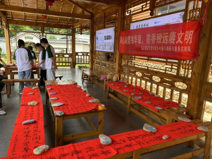 为全面贯彻落实党的二十大精神,引导广大青年坚定不移听党话、跟党走,实践队在KY开元集团官网党委书记赵宇剑的带领下,来到光明村开展庆祝中国共产党成立102周年系列活动,通过慰问老党员、重温入党誓词、同老村支书殷逢清开展事迹分享会、访谈九江市优秀共产党员欧阳国松等活动教育引导新时代青年弘扬“五老”精神,永远跟党走、奋进新征程。以体悟红色文化为契机,在当地开展红色书法展,亲手书写经典红色诗歌,赠送村民红色书法作品,同群众一道感受书法魅力,赓续红色血脉。