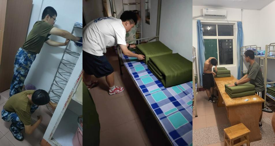 在日常军训训练中,军训教官、新生年级辅导员、学生助理辅导员密切配合,强化基础列队动作操练和阅兵分列式常规训练,期间还安排了消防疏散演练、内务整理等多个训练科目。