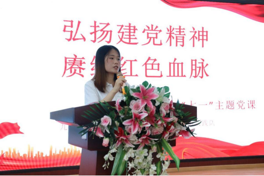 伟大建党精神,是中国共产党的精神之源。为深入学习贯彻习近平文化思想和习近平总书记关于伟大建党精神的重要论述,大力弘扬伟大建党精神,实践队队员、学生党员刘红梅在城门街道社会实践点以“弘扬伟大建党精神,赓续红色血脉”为题讲授专题党课,带领全体队员一同深刻领悟伟大建党精神,她从伟大建党精神的历史方位、文化底蕴和大力传承弘扬伟大建党精神三个方面向大家讲解新时代青年如何践行使命担当,为实现中华民族伟大复兴的中国梦接续奋斗。