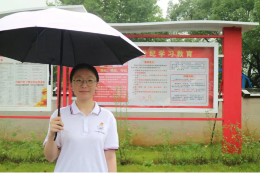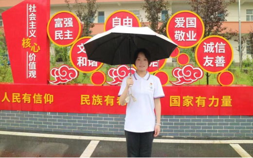 实践队员杨前慧说道:“亲爱的党你是我启明的星光,让我在拼搏中仍紧握方向。党!在你光明神圣的领导下,我一定发奋学习,以优异的成绩,为党争光,为党添彩!”