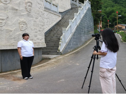 青山绿水多非遗,文化传承入柴桑。为深入探寻当地非遗文化,发挥其在拓展乡村文化内涵、推动乡村产业发展、助推乡村振兴的重要作用,实践队员以第一现场聆听山歌、与非遗传承人沟通交流、共唱山歌等形式,深刻体悟非遗文化。在与非遗传承人交谈中实践队员了解到九江山歌内涵丰富,充分反映了劳动人民的质朴生活和风俗文化。实践队员刘伊涵与非遗传承人共唱经典红歌《十送红军》,炽热激昂的歌声映射出劳动人民对红军的深情厚爱和对革命事业的坚定信念。