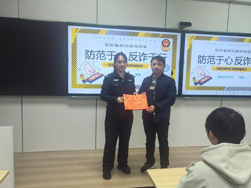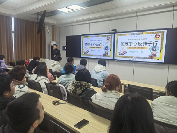 为切实增强学生的反诈意识和识骗能力,有效防范网络诈骗案件发生,KY开元集团官网特邀九江市公安局濂溪区分局反诈中心民警李清警官于12月11日下午来院宣讲电信网络诈骗防范知识。学院党委副书记周梓哲、学生管理科科长周龙波、辅导员冯军老师、2024级各班班长、团支书、班委参加讲座。讲座由周龙波主持。