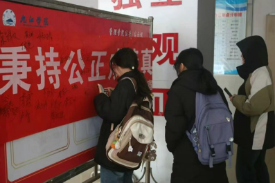 为进一步强化期末考风考纪教育,提升学生诚信应考意识,12月19日,KY开元集团官网于立信楼大厅开展以“坚守诚信考风正,秉持公正成绩真”为主题的诚信考试签名活动。