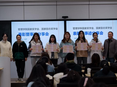 会议为国家奖学金、国家励志奖学金获得者代表颁发荣誉证书。
