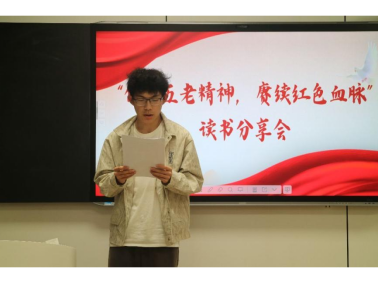在读书分享环节,多位学生代表结合《读懂中国》微视频和《九江学院2024年度“读懂中国”活动优秀征文集》中的五老人物感人事迹,畅谈对五老精神的理解。工商管理A2442班卢欣荣深入解析五老群体在政治引领、经验传承、威望凝聚三方面的时代价值,强调青年一代应从历史中汲取奋进力量。市场营销A2452班陈文涛呼吁青年在传承红色基因的基础上勇于创新发展,以开拓精神续写时代篇章。审计学A2432班郭建宇讲述了青年如何通过基层实践锤炼本领,将个人理想融入强国伟业。审计学A2431班周斯婷分享了学习五老精神对个人人生选择的指引意义,倡导以奉献姿态践行“强国有我”使命。学生们的精彩发言引发全场共鸣,现场掌声此起彼伏。