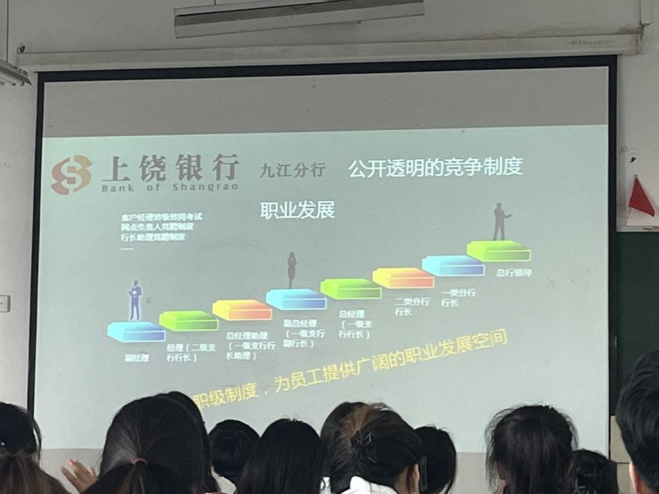 宣讲会上,洪飞就上饶银行的发展历程、发展潜力、企业规模、福利待遇、应聘条件等方面向同学们做了详细的介绍。洪飞指出,上饶银行建立合理的薪酬待遇和职务晋升机制,还为员工提供丰富多彩的员工活动。