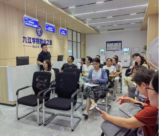 随后,学校招生与就业处纪秀辉老师对“就业之家”的建设背景、服务设施及九院就业公众号等进行了相关介绍,并带领大家参观和体验了招聘服务室(直播带岗工作室)、就业咨询室、求职触摸一体机、智慧面试亭等。