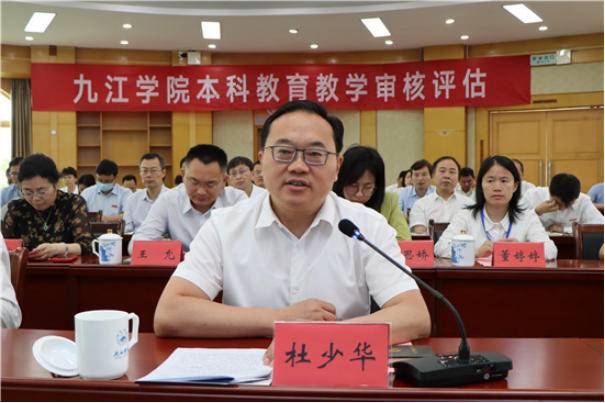杜少华代表九江市委、市政府对评估组各位专家的辛勤工作表示衷心感谢。他表示,九江市委、市政府将与九江学院一起深入研究分析,积极帮助学校解决教育教学工作及学校全局发展中存在的困难和问题。他希望学校坚持问题导向,抓好整改落实;牢固树立本科教育教学中心地位,不断提升育人水平;紧密对接区域经济社会和产业发展需求,以特色办学服务地方发展。